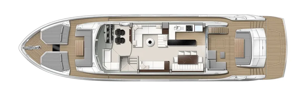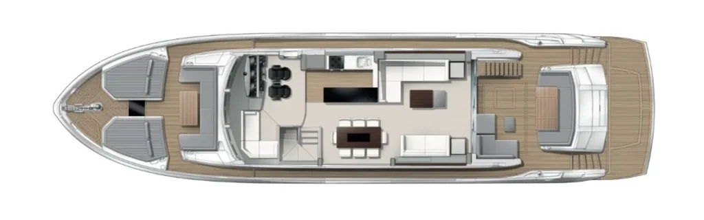 View the 76 Yacht to see how Sunseeker has arranged spacious foredeck seating, adaptable cockpits, and flexible flybridge options, a functional choice in the luxury yacht for sale in GCC category.