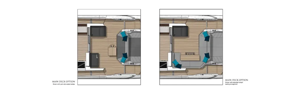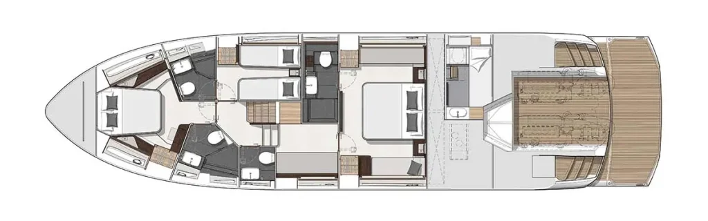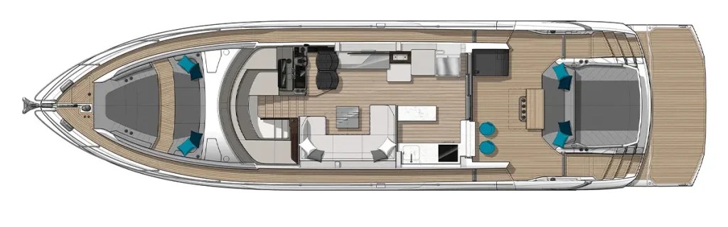View the layout of Predator 65, a showcase of space, style, and innovation, setting a benchmark in luxury boats for sale.